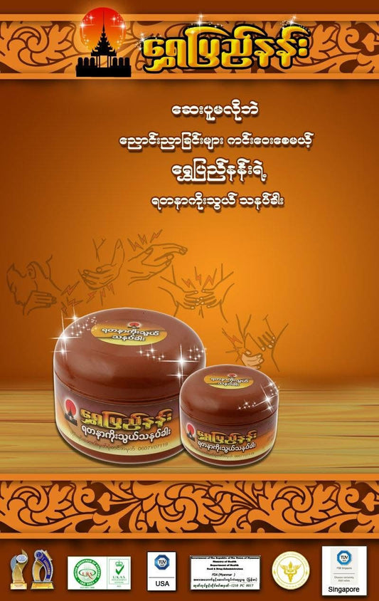 Out of StockSPN ရွှေပြည်နန်း ရှင်မတောင်အပွေး သနပ်ခါး(ဘူးသေး 40g)