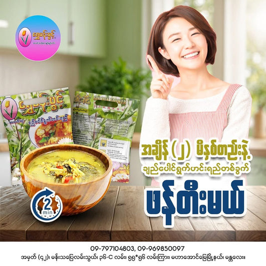 Out of StockSPP ရွှေပန်းပွင့် (ချဉ်ပေါင်ရွက်ဟင်းရည်)