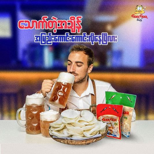 Out of StockHH ပုစွန်ကင်ပွန်းရွက်နုချဉ်ကြော်